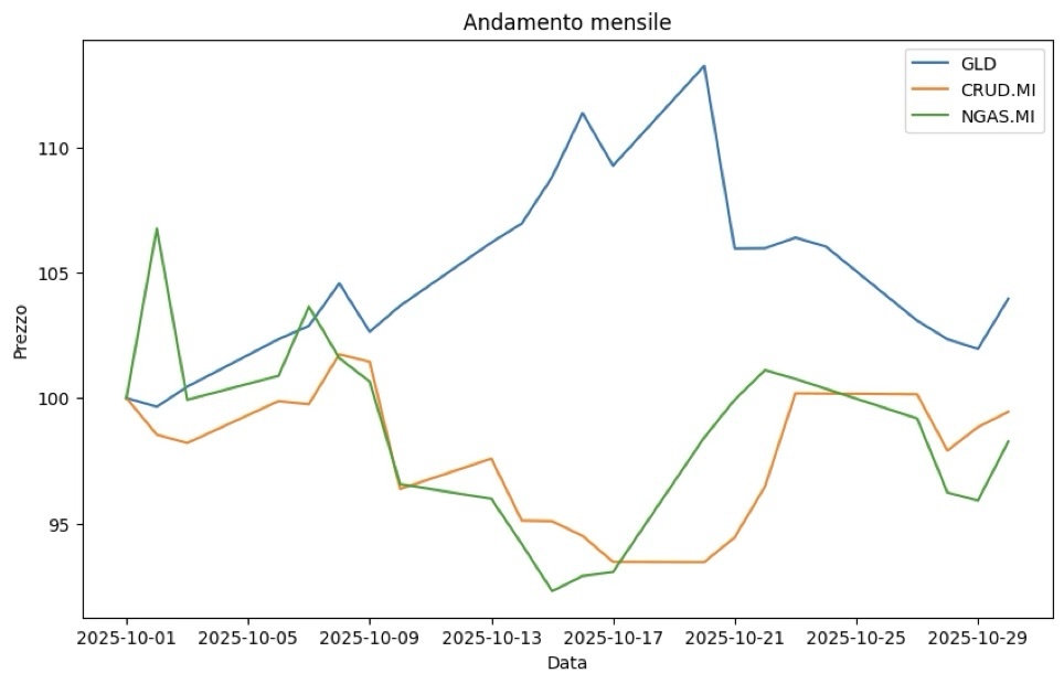 Sul fronte delle commodity è proseguita la volatilità dell’oro, che dopo aver toccato nuovi massimi storici è ritracciato verso i 4000$ l’oncia. Mese negativo per gas naturale e petrolio.