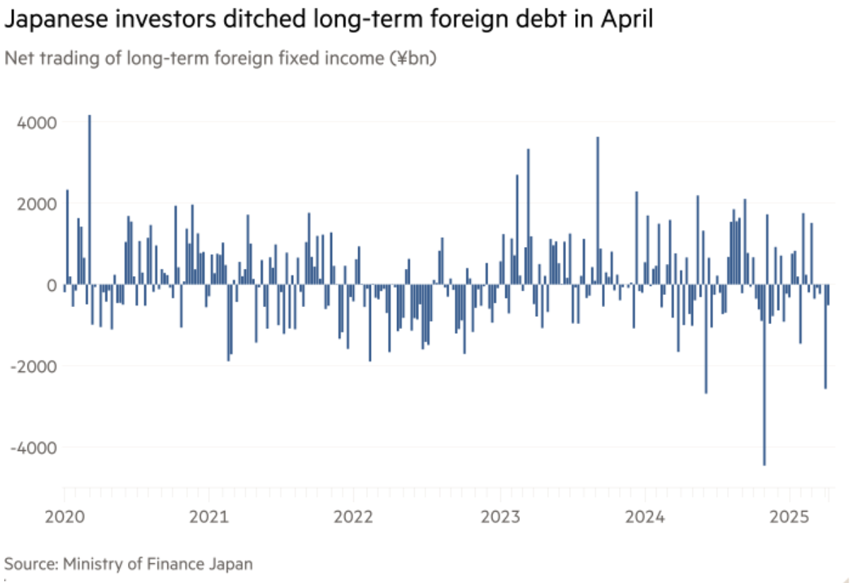 Grafico 3 – Gli investitori giapponesi (primi detentori di Treasuries) hanno venduto bond americani ad aprile 2025